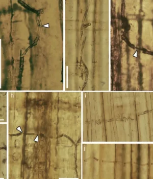 Uma equipe de pesquisa chinesa liderada pelo Dr. Ning Tian e pelo Dr. Youngdong Wang (Instituto de Geologia e Palenologia de Nanjing) foi bem preservado no nordeste da madeira petrificada Jurássica do nordeste da China, 160 milhões de anos atrás. O exame microscópico é publicado no Fossil Hiifi Ga Dark, que é um indicador de pigmentação, uma característica do fungo contemporâneo de blue-saggie, que resulta na descoloração da floresta. Interesse, ao entrar na parede celular de madeira, o HiFi geralmente forma uma estrutura muito especial chamada “peg de intrusão” (Figura 1). Escusado será dizer que, ao empurrar as paredes da sala de madeira, a Hiifi geralmente se torna mais fina, facilitando a descascamento com uma barreira forte. A descoberta de infiltração de PEG permite que a equipe garantisse que o fungo fóssil que eles receberam pertencem ao fungo azul. “Em contraste com o fungo na madeira, o que reduz as paredes das células de madeira por emissões enzimétricas, as estruturas de madeira do fungo-galo azul estão faltando na capacidade enzimática de digestão. Em vez disso, seu hi-fi quebra as paredes de células de madeira através de cerinos”. Dr. Tian diz.