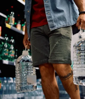A água engarrafada serve como principal fonte de água potável para muitas famílias na Guatemala. Jarros grandes geralmente são enchidos em instalações de purificação locais ou estações de reabastecimento de bairro, onde a água é tratada, selada e entregue em residências e empresas.