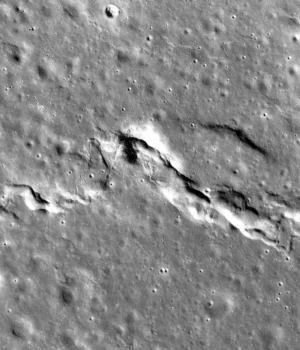 Em 2010, o co-autor Tom Waters, cientista sénior emérito do Centro de Estudos da Terra e Planetários, encontrou evidências de que a Lua está a encolher lentamente. À medida que o interior esfria, a superfície se contrai, criando forças de compressão que formam a escarpa lobada nas terras altas.