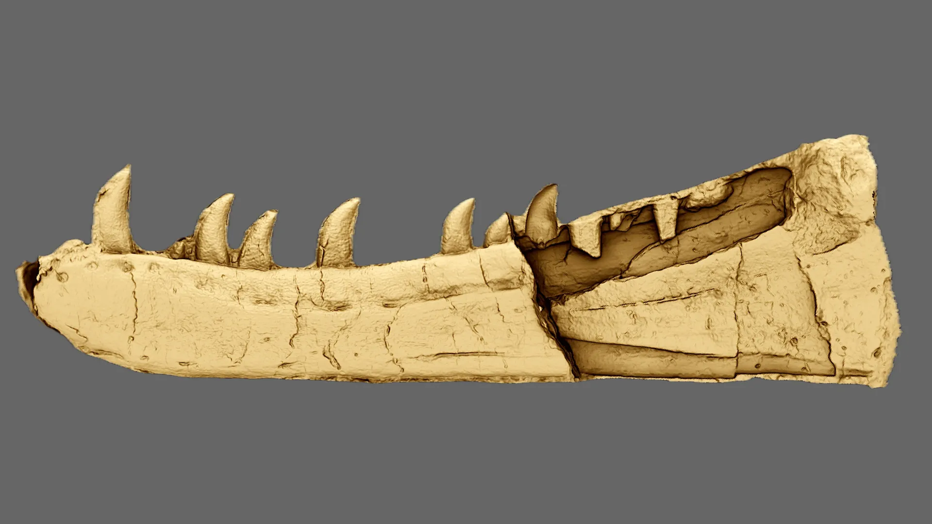 O fóssil é composto pelo molde natural da mandíbula e todos os ossos originais desapareceram. Assim, usando a digitalização de fotos, o estudante de palepontologia Evans conseguiu reestruturar um digital 3D perfeito para permitir os detalhes.