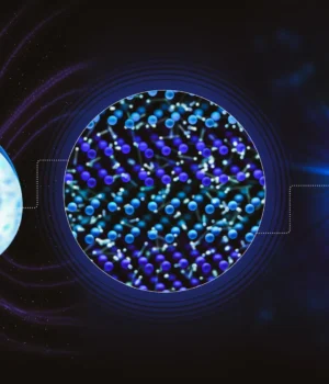 *A água superiônica é um estado incomum da água que se forma sob pressões e temperaturas extremamente altas, muito mais altas do que as encontradas na superfície da Terra. Nesta fase, a água comporta-se como um sólido, mas os iões de hidrogénio podem mover-se livremente através de uma rede rígida de átomos de oxigénio. Esta combinação única dá à água superiônica a capacidade de conduzir eletricidade. Os cientistas acreditam que ela existe nas profundezas do planeta gigante, onde essas condições extremas ocorrem naturalmente.