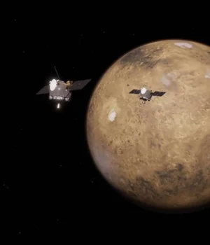 A dupla de naves espaciais irá rastrear rápidas mudanças na magnetosfera de Marte, a região ao redor do planeta afetada por forças magnéticas. Ao fazer isso, os pesquisadores esperam identificar os processos que permitem que a atmosfera marciana vaze lentamente para o espaço.