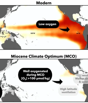 “O Mar da Arábia também foi bem oxigenado durante o MCO, mas não tanto quanto o Pacífico, com oxigenação moderada e um eventual declínio que ficou atrás do Pacífico em cerca de 2 milhões de anos”.