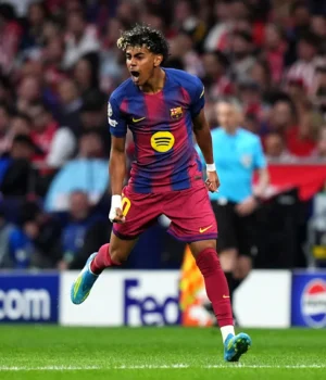 O rival do Barcelona, Lamine Yamal, levou menos de cinco minutos para marcar na segunda mão das quartas de final da Liga dos Campeões contra o rival da La Liga, o Atleti.