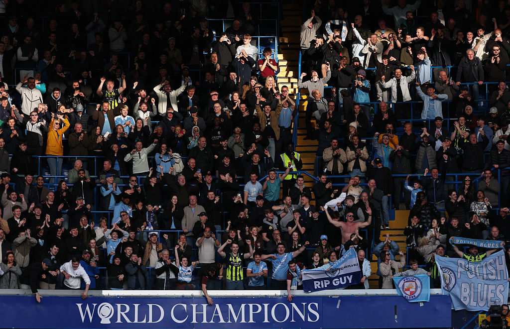 Esta imagem de um torcedor do City bebendo de uma garrafa com o logotipo do Arsenal, transmitida ao vivo durante Chelsea x Manchester City neste domingo, se tornou viral em todo o mundo, apenas uma semana antes do confronto pelo título entre os dois rivais.