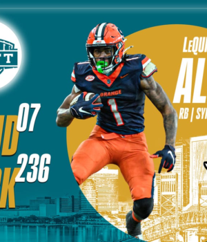 Na sétima rodada do Draft de 2025 da NFL, Jacksonville selecionou o Jaguars Syracus para ficar atrás de Lakuynt Allen.