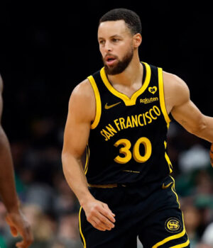 Stef Curry e Golden State Warriors enfrentarão Memphis Griezlis no torneio de reprodução nesta semana. (Imagem Gatety via Daniel Parhizkran/Boston Globe)
