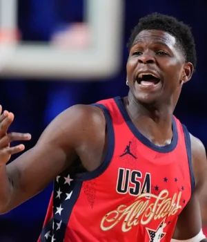 Edwards dirigiu até a cesta à vontade, lançou uma série de saltadores e fez jogadas defensivas. Ele até tentou (e não conseguiu) ganhar uma bola ao alto contra Wemby, que ele credita por ter dado o tom em sua primeira vitória por 37-35 sobre o Team World.