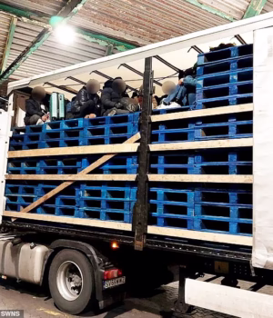 Os migrantes foram então carregados num camião que mais tarde foi parado por agentes quando se aproximava do porto de ferry em Dover.