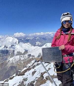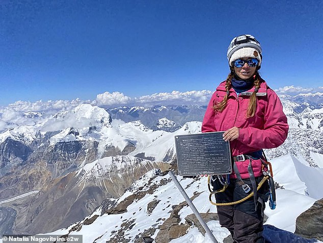 O alpinista russo Natalia, que também é conhecido como Natasha Nagovitsina (47), está preso a 22.965 pés na escolha de Victori do Quirguistão, incluindo 24.406 pés de cume.
