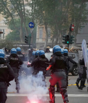 Quando os fãs “Ultra” do Lazio tentaram passar pelo obstáculo, cerca de 2,5 policiais pegaram vários pontos de inflamação ao redor de Stadio Olimpico e deixam o cargo.