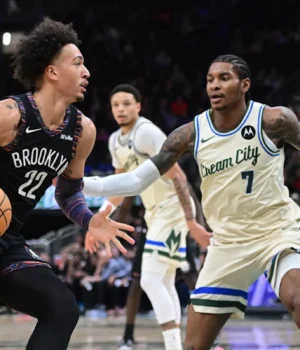 D falso Perdeu para Bucks 116–99 Graças a eles virarem bastante a bola em um jogo de sábado em que o Brooklyn ficou 32 pontos atrás. O novato Danny Wolf fez 22 pontos, quatro rebotes e quatro assistências em seu primeiro jogo da temporada, enquanto o atacante Jalen Wilson fez 13 pontos fora do banco, com alguns minutos estendidos devido a lesão.