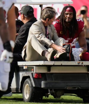 No entanto, a derrota do Tampa Bay não foi nada que fez com que Fred Warner fosse expulso de campo com uma temporada encerrada e desaparecesse do campo com o tornozelo. Warner se foi. Nick Bosa foi para ACL em 21 de setembro.