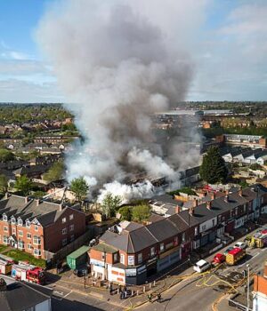‘As equipes de bombeiros estão usando três plataformas hidráulicas e jatos principais para extinguir o brilho e trabalhar em estreita colaboração com o Serviço de Ambulância Cadent, Seven Trent e West Midlands.