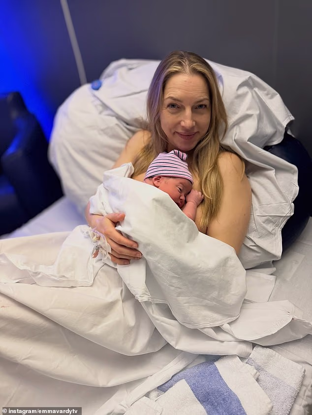 Na legenda de sua postagem, Emma escreveu: “Apresentando minhas melhores notícias de última hora. O bebê Jago Fionn está aqui com apenas algumas horas de vida, brincando um pouco com a câmera.
