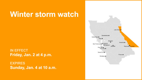 A área metropolitana de Lake Tahoe e a área de Mammoth Mountain são o foco de um alerta de tempestade de inverno emitido pelo Serviço Meteorológico Nacional às 12h08 de quarta-feira. O relógio é válido de sexta-feira, às 16h, até domingo, 4 de janeiro, às 10h.