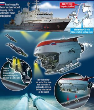Um porta -voz do Ministério da Defesa do Reino Unido acrescentou: ‘Estamos comprometidos em manter e aprimorar a proteção e elasticidade da infraestrutura crítica da Undercia.