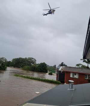 A polícia de NSW usa um helicóptero para resgatar os moradores de águas de inundação em Nova Gales do Sul.