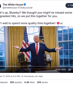 A Casa Branca criou uma conta na plataforma de mídia social de tendência esquerdista Bluesky, e sua primeira postagem foi um vídeo destinado a trollar sua base de usuários amplamente progressista.