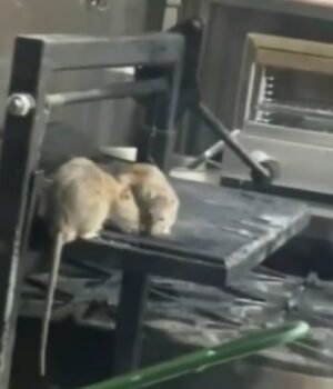 Ratos gigantes foram pegos rastejando sobre a grelha da cozinha de um pub popular enquanto os clientes comiam no restaurante a poucos metros de distância.