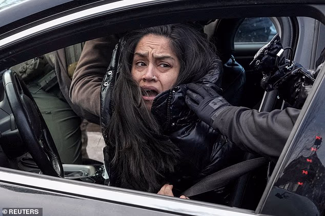 Alia Rahman, 42, é acusada de bloquear agentes do ICE que trabalhavam para prender ilegais em Minneapolis na terça-feira, quando policiais a tiraram de seu Ford Fusion preto enquanto ela se agarrava desesperadamente à porta do motorista.