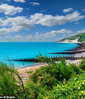 Uma cidade costeira popular na Inglaterra foi chamada de ‘Caribe no Reino Unido’ em suas palmeiras, clima ensolarado e meses quentes para o mar azul turquesa.