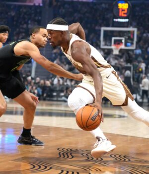 A única salvação dos Warriors foi um ataque igualmente formidável em Nova Orleans – e o ataque implacável de Butler à cesta. Todas as sete tentativas de Butler em campo entraram na área, e ele chegou à linha de falta mais 14 vezes, que converteu em 10 pontos, mas levou um susto no final do primeiro tempo quando caiu no chão tentando converter um passe lob de Pat Spencer no trânsito.