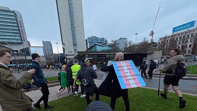 O porta-voz disse: ‘Hannah estava falando hoje em Manchester sobre coesão e unidade comunitária. Alguns indivíduos furiosos, tentando espalhar a intolerância anti-trans, escolheram este momento para tentar silenciar e assediar Hannah.