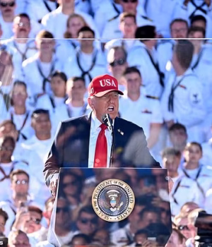 O discurso pretendia comemorar o 250º aniversário da Marinha, mas Trump rapidamente o transformou em uma reunião política quando ele começou a orgulhar de sua saúde.