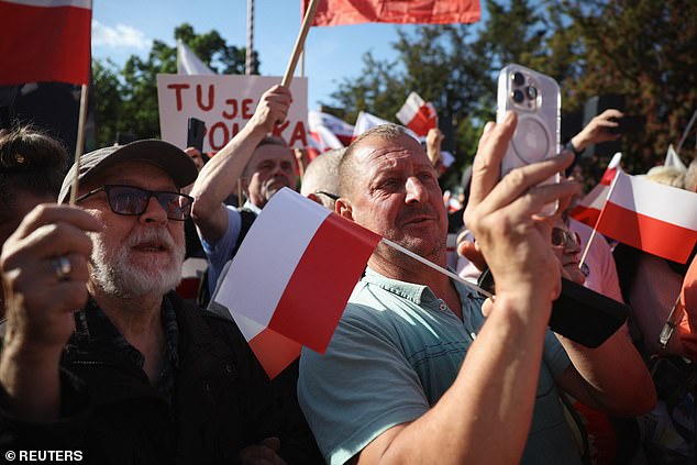 Seus eleitores mostraram os chapéus carregando a palavra ‘Polônia’ o mais importante ‘, ecoando o slogan’ Make America Great Again ‘de Trump novamente.