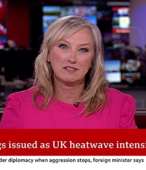 A apresentadora de 56 anos estava apresentando um episódio da onda de calor na Grã-Bretanha quando a AutoQ a instruiu a tomar cuidado com “pessoas grávidas”.