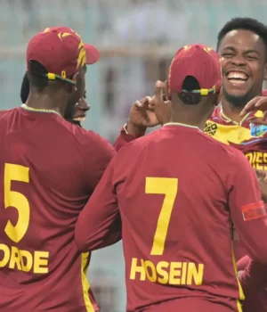 As Índias Ocidentais então selaram a vitória quando Shepherd terminou com 5-20 com quatro postigos, incluindo um hat-trick sensacional no 17º over.