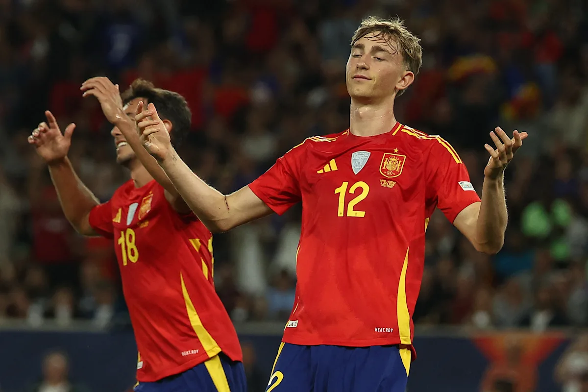 David Raya, Barrios, Grimaldo, Vivian, Llorente, Michael Merino, Ferran, Fabian Ruiz, Borja Iglesias, Dani Olmo, Eremi, Pedro Porro, Remiro, Laporte, Cuberci, Baena, Fornals, Jubimendi, Fermin, Alex Garcia, Valix Garcia, Warria, Ware.