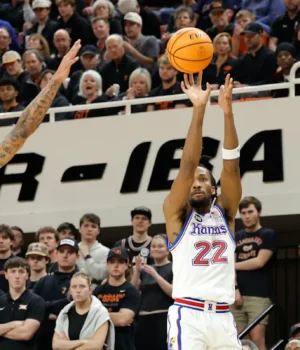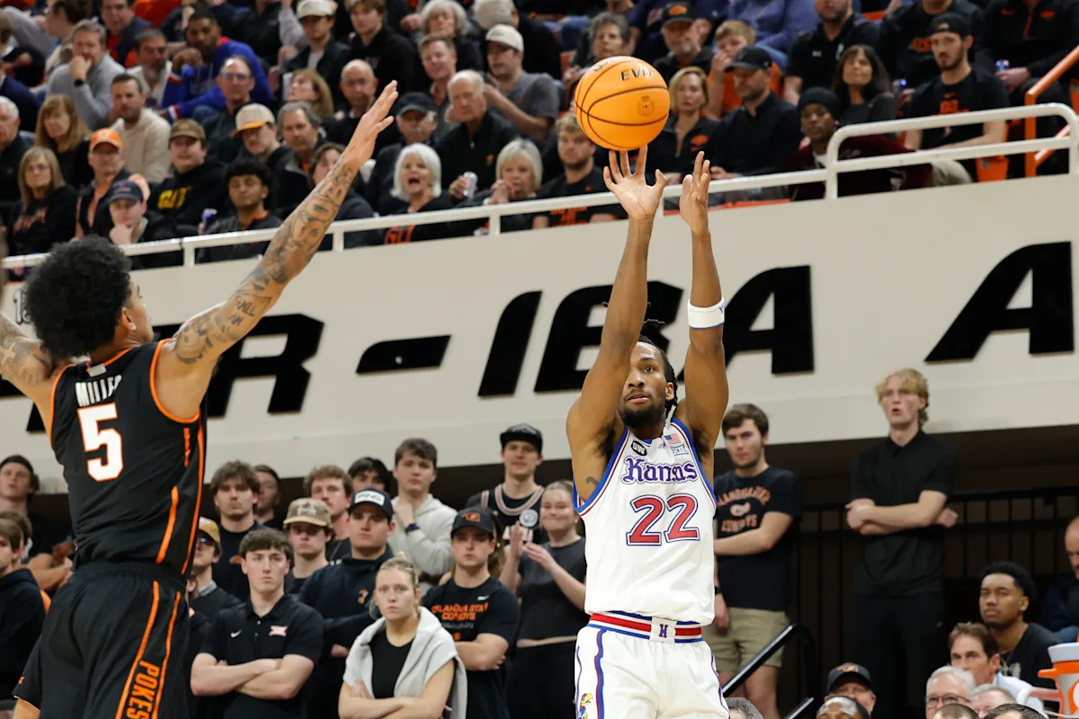 Trey White somou 16 pontos e Elmarco Jackson 14 pontos para o Kansas. Bryson Tiller fez 10 pontos, 11 rebotes e sete assistências e Flory Bidunga somou oito pontos, 11 rebotes e quatro bloqueios para os Jayhawks (20-6, 10-3 Big 12), que acertou 11 de 24 arremessos de 3 pontos e Se recupera da derrota no estado de Iowa último sábado