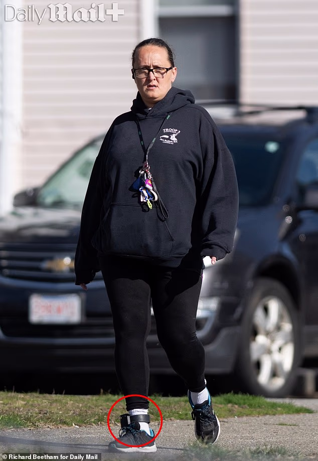 Doreen Gifford é fotografada do lado de fora de uma casa de recuperação em New Bedford, Massachusetts, na manhã de quarta-feira. Ela se recusou a falar com um repórter quando foi confrontada sobre o abuso indecente de seu filho, Logan, aos 10 anos.