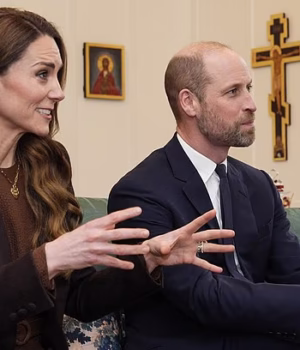 Catarina, Princesa de Gales e Príncipe William falando com a Arcebispa de Canterbury, Dame Sarah Mullally, em fevereiro de 2026