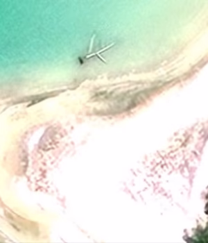 A teoria para a localização do local do acidente é baseada em uma figura de satélite mostrando um objeto incomum no fundo do oceano pelos pés da ilha.
