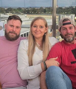 Virginia Jiffrey, que sofreu tráfico sexual, começou a apelar por dinheiro depois que a família está presa em sua propriedade multi -milhão de dólares há anos. A representação é Danny Wilson com seu irmão Sky Roberts (à esquerda) e Virgínia