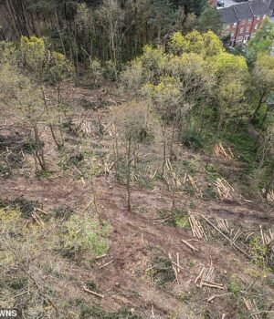 Os residentes locais ficaram chocados e ‘discutidos’ depois que pinheiros e carvalhos foram derrubados por engano pela empreiteira Foxstone Forestry.