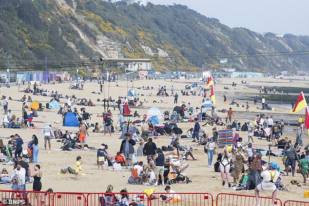 As pessoas gostam de clima quente e ensolarado em Bournemouth Beach na sexta -feira, 11 de abril