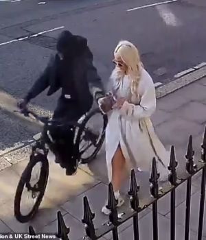 Um ladrão roubou um telefone de uma mulher que caminhava pela rua na área exclusiva de Mayfair, em Londres