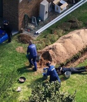A horrível descoberta de Tradies trabalhando no quintal de uma casa de férias desencadeia uma grande operação policial
