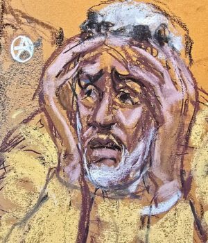 Shan ‘DD’ carrega uma semelhança perturbadora com um esboço do tribunal com a famosa pintura de ‘The Scream’ dos pentes ‘DD’ Edvert.