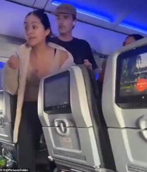 Outros passageiros horrorizados apareceram para impedi-lo de ir para a saída de emergência, e um deles afirmou que ele “tentou abrir a porta” antes do início do vídeo.