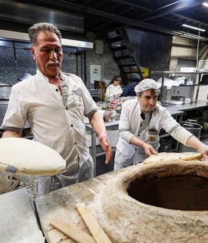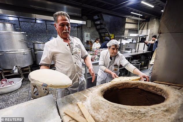 Enquanto os ataques EUA-Israel abalaram o Irão nos últimos dias, os iranianos estão a tentar manter alguma aparência de normalidade. Foto: Homens preparam pão em um restaurante em Teerã em meio ao aumento das tensões ligadas ao conflito EUA-Israel com o Irã