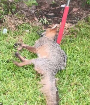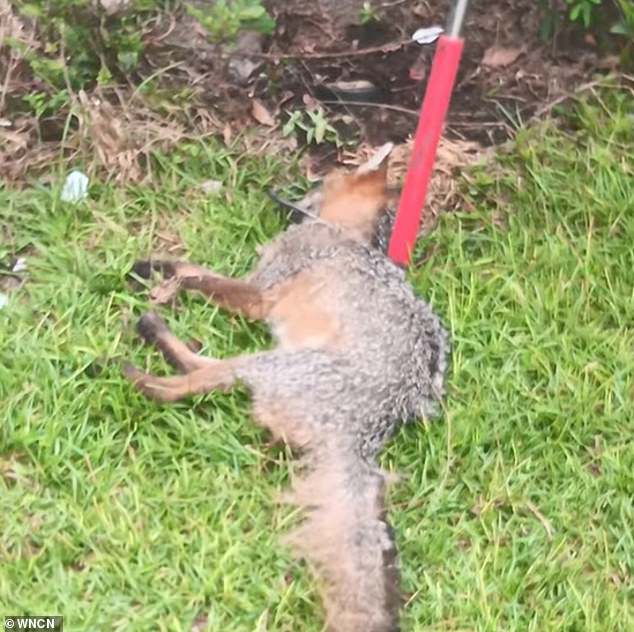 Duas pessoas foram atacadas por uma raposa agressiva em Aberdin, norte da Carolina na terça -feira de manhã. (Ilustrado: depois que a raposa foi baleada depois que morreu)