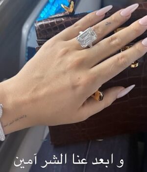 O parceiro de Ronaldo, 1, compartilhou uma imagem de pedra retangular e transparente e acrescentou estas palavras: ‘e manter o mal longe de nós em árabe’.