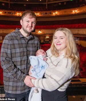 Dois dias antes da data do parto, Miss Ford, de 24 anos, disse que encontrou seu assento molhado no teatro centenário e descobriu que seu bebê estava a caminho.