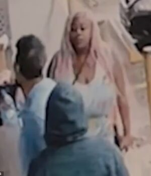 Uma mulher usando uma longa peruca rosa foi vista entrando em um confronto acalorado com outra mulher, Latrosha Williams, do lado de fora de um posto de gasolina Sunoco em Miami no domingo.