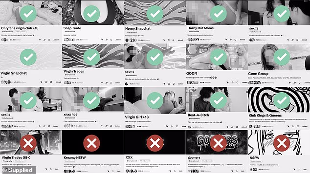 As contas de adolescentes puderam participar de uma série de comunidades X dedicadas ao compartilhamento de conteúdo sexual, conhecidas como ‘Virgin Trades’ ou ‘Goon Groups’.